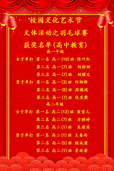 本次羽毛球大賽進一步豐富同學(xué)們的課餘生活,激發運動熱情(qíng),使(shǐ)同學們在挑戰(zhàn)中磨煉意誌、強健體魄,展現(xiàn)新時代高中生奮(fèn)發(fā)向上、奮勇拚搏(bó)、永不放棄的青春風(fēng)采(cǎi)。